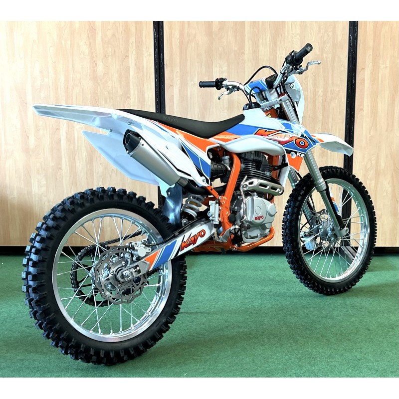Vous souhaitez débuter dans l’univers de la moto tout-terrain ? Mai vous ne voulez pas vous ruiner avec une motocross ? Alors la moto typé enduro 250cc K2 est faite pour vous ! Cette motocross 250cc offre le meilleur rapport qualité/prix que vous puissiez trouver sur le marché ! Une qualité exceptionnelle, digne des plus grande moto Japonaise, mais pour un prix bien plus attractif. La conception de cette moto cross 250cc type enduro est exceptionnelle, avec un châssis robuste, très bien étudier pour incarner un compromis idéal entre précision et agilité. Le moteur de 250cc 4t et robuste et puissant. Le moteur 16ch de 250cc offre un couple impressionnant et une puissance adaptés spécialement à la pratique de l’enduro. Cette moto cross pas chère est idéale au vu de ses prestations, fiabilité et qualité de conception ! Attention ! prix de lancement ! Malgré une conception typé enduro, la motocross 250cc K2 de chez KAYO n’est pas homologuée route ! Elle repose sur un ensemble de composants d’une qualité et d’une fiabilité à toute épreuve : châssis renforcé, suspension réglable, phare avant, freins hydraulique à disque… A noter les roues cross en 21/18. MOTEUR 250cc 4T de 16 ch Le moteur 250cc 4t de cette enduro moto est pensé dans le but d’être puissant, léger et compact. Son poids réduit lui confère une puissance et une maniabilité exemplaires. Cette motocross 2020 est également équipé d’un démarreur électrique + kick, aucun risque de tomber en panne temps qu’il y a de l’essence dans le réservoir de 6.7 L. Caractéristiques : Cylindrée : 250cc 4T Puissance : 16 ch Refroidissement : air Transmission : chaîne SUSPENSIONS Avec ça fourche inversé à l’avant et une suspension arrière réglable, la moto de cross 250cc de chez KAYO à spécialement était étudier pour une utilisation ballade et terrain de cross. La fourche inversée de cette motocross garantie une suspension robuste et fiable, en comparaison à une fourche « classique ». Cela facilite ainsi le pilotage et l’agilité de la moto enduro et donne un avantage réel aux pilotes Kayo. HAUTEUR DE SELLE 875 mm & roue avant de 21″ et arrière de 18″ C’est une moto est idéale pour découvrir les plaisirs de la motocross enduro, mais convient également très bien aux pilotes avertis, ayant eu une première expérience en Moto Cross, et souhaitant s’initier à la pratique tout-terrain. La hauteur de selle de 875 mm propose une position de conduite confortable pour les adolescents et adultes. Idéal pour les ballades en forêt ou sur terrain de cross. Caractéristiques et dimensions : Dimensions (mm) : 2010 x 840 x 1160 Hauteur de selle : 875 mm Roue avant : 21″ Roue arrière : 18″ MOTEUR Type : Mono-cylindre, 4 temps YX refroidissement par air Cylindrée : 250 cc Puissance max. (kw/tr/min) : 12/7500 Boite à vitesse : Mécanique 5 rapports Transmission : chaîne Démarrage : électrique Allumage : CDI Carburant : conseillé SP98, minimum SP95 Huile moteur : SAE10W40 DIMENSIONS, POIDS, CAPACITÉ Dimension moto (longueur x largeur x hauteur) : 2010 x 840 x 1160 mm Dimension caisse (longueur x largeur x hauteur) : 1750 x 460 x 830 mm Poids à vide : env. 105 kg Hauteur de selle : 875 mm Garde au sol : 320 mm Empattement : 1340 mm Charge max. : 1 place / 100 kg Vitesse max. : env. 100 km/h Capacité réservoir : 6.7 L CADRE, FREIN, ROUE Type de cadre : Cadre en tube d’acier, brevet KAYO Guidon : Acier Pneus avant : 21″ Pneus arrière : 18″ Système de frein avant : Frein hydraulique à disque Système de frein arrière : Frein hydraulique à disque